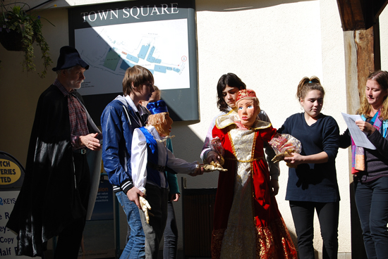 Первая неделя была посвящена Шекспиру и времени, в которое он жил. Мы уже в четвертый раз участвовали в фестивале на родине поэта, который проводится ежегодно в его день рождения. Прямо на улицах города коллективы из разных стран показывают свое искусство, и мы в этом году привезли шекспировскую «Двенадцатую ночь». В день фестиваля с утра мы все, вместе с куклами, участвовали в красочном костюмированном театрализованном шествии от главной площади в центре Стратфорда до церкви, в которой похоронен великий поэт. А потом мы дважды сыграли наш спектакль на площадках фестиваля.