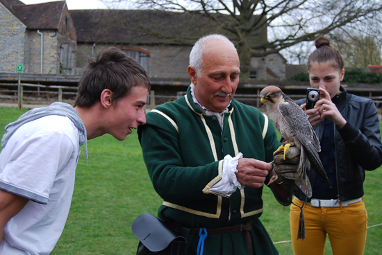 с интересом смотрели, как настоящий сокольничий учит сокола охоте и с любезного разрешения сокольничего Януша фотографировались с его питомцами – соколом и совой.