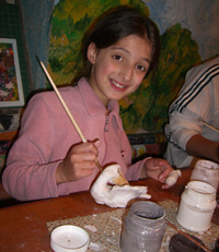 — На наших занятиях по керамике я, в первую очередь, добиваюсь от ребят, чтобы они могли сосредоточиться на какое-то время, работа с глиной кропотливая, требует терпения, бережного обращения с материалом. Этим детям не хватает сосредоточенности, внимания. Они не привыкли к концентрации. Поэтому им трудно концентрироваться на школьных уроках, на чтении. А лепка изначально ориентирована на то, что они должны за одно занятие продумать работу, начать и закончить, причем закончить так, чтобы самому нравилось. Рисунок можно отложить, дорисовать потом, а глина не может ждать, она засохнет и всё. Иногда получается, что результат совсем иной, выходит не то, что ребенок задумал. Хотел сделать зайца, а в результате получилась собака или черепаха. Если так получается, я помогаю ребенку понять, на кого же это все-таки похоже, переделать немного, чтобы у него осталось чувство удовлетворения. Учимся не отвлекаться, не мешать работать другим. Эти навыки им пригодятся, и в школе, и в любой работе.