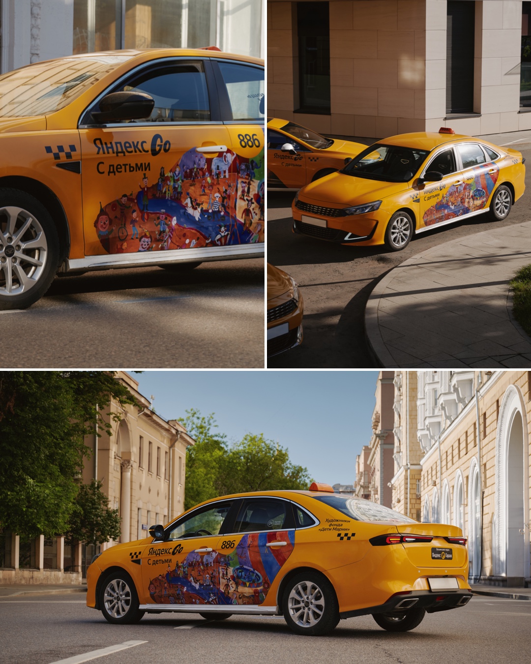 Мы вместе с Яндекс Такси и фондом «Помощь рядом»будем напоминать о том, что дети нуждаются в нас, в помощи и заботе на пути к самостоятельности. Тариф «Детский» в Яндекс Такси с рисунками детей-подопечных благотворительных фондов уже можно увидеть на дорогах Москвы и других больших городов.