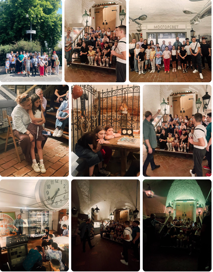 Огромная благодарность музею «Огни Москвы» и лично экскурсоводу Сергею Свирскому — за тёплый приём, увлекательную экскурсию и за то, что пригласили нашу группу бесплатно. Спасибо за поддержку программы «Дети Марии — детям Беслана».