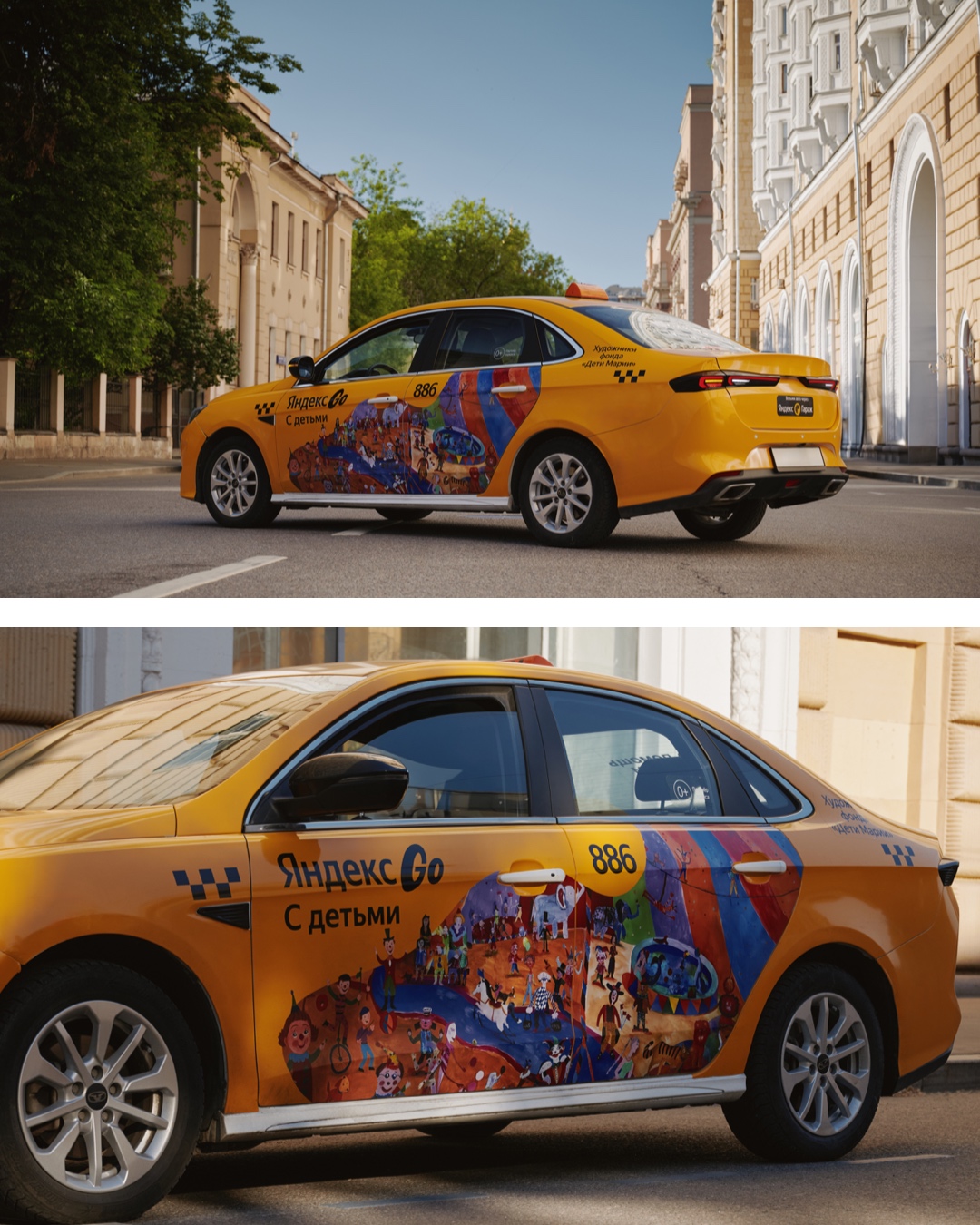 К Дню защиты детей Яндекс Такси и «Помощь рядом» запустили проект, в котором машины такси стали настоящими «холстами» для юных художников. Работы детей из разных благотворительных фондов теперь украшают более 2000 автомобилей в городах-миллионниках.