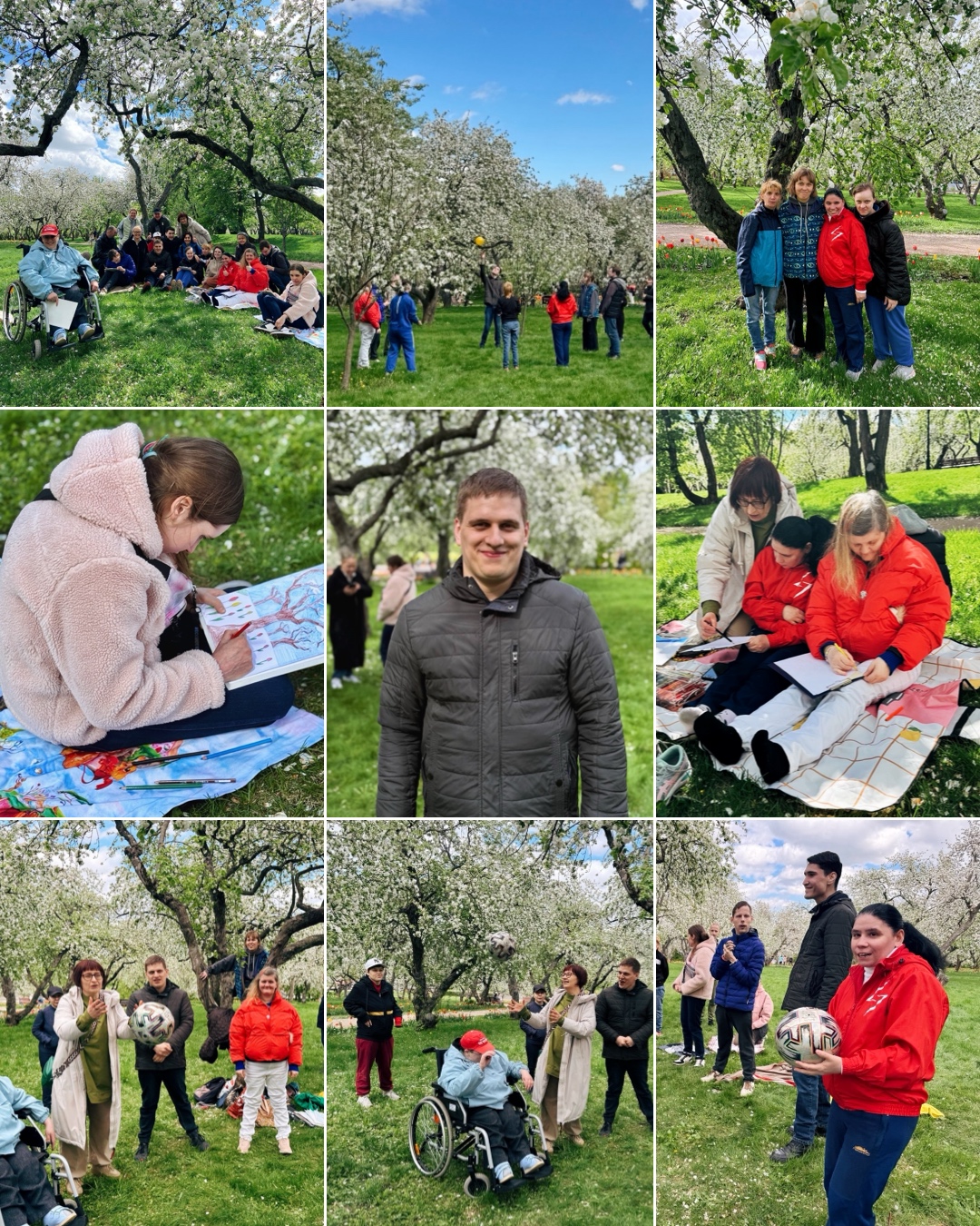 Пикник в яблоневом цветущем саду вместе с нашими участниками — взрослыми с ментальными особенностями, которые живут в социальных домах и семьях.